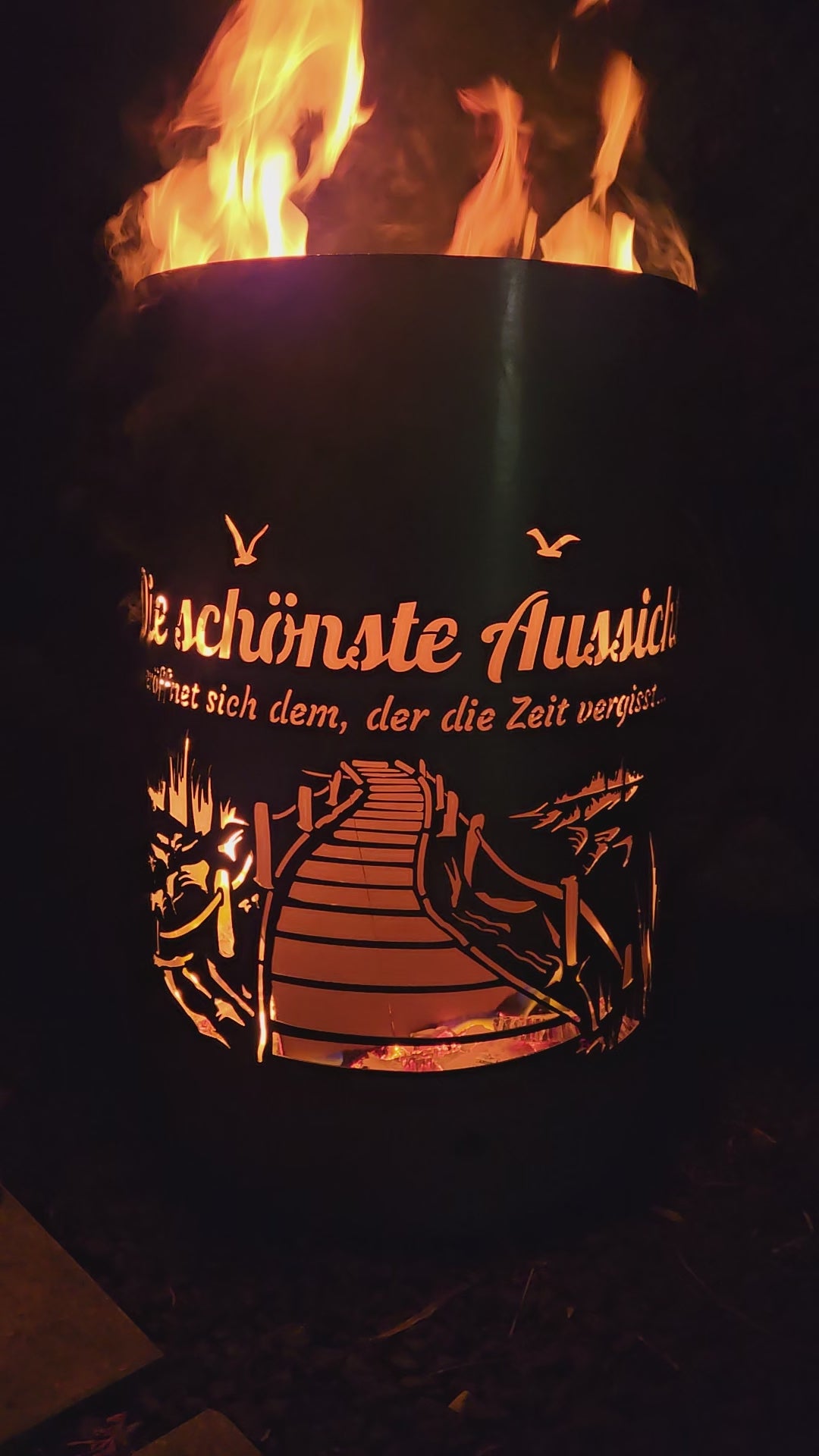 Feuertonne "Die schönste Aussicht eröffnet sich dem, der die Zeit vergisst"