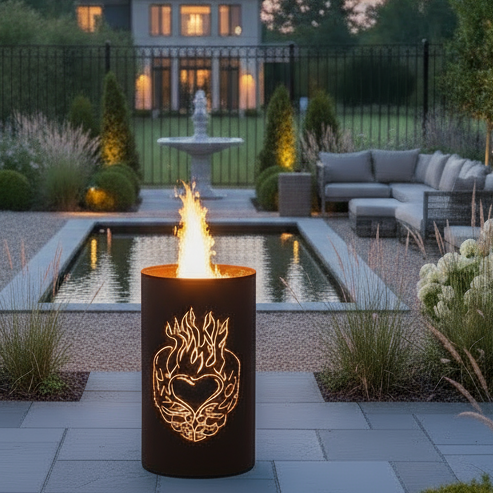 Entzünde das Feuer, lass die Flammen tanzen und erlebe die Magie der "Burning Heart"-Feuertonne – eine Fusion von Funktion und Kunst, die deine Outdoor-Momente unvergesslich macht.