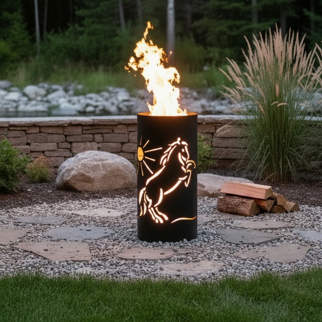 Mit dieser Pferde-Feuertonne wird dein Garten zu einem Ort der Entspannung und des gemeinsamen Erlebens. Lass dich von der Magie des Feuers und der Schönheit des Pferdemotivs verzaubern.