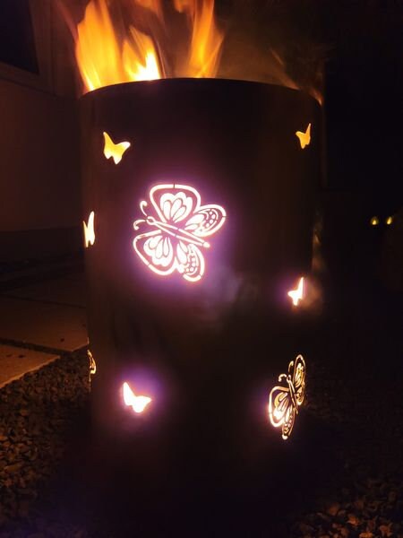 ✨ Romantische Feuertonne mit Schmetterlingsmotiv – Magie aus Feuer & Licht