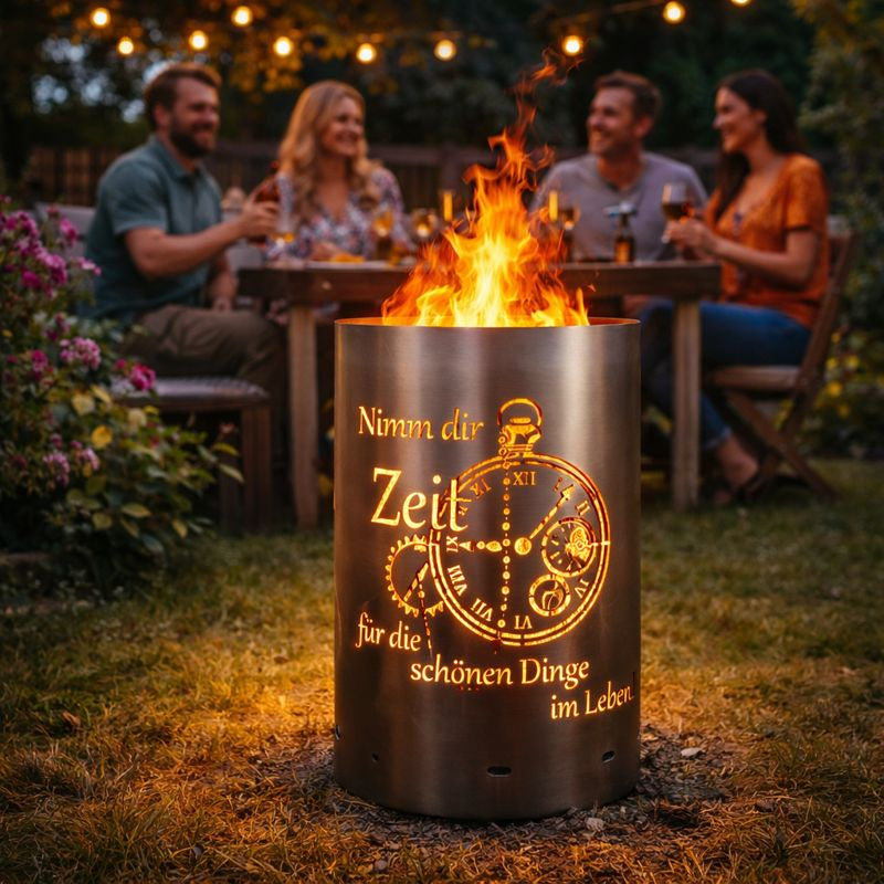 Tauchen Sie ein in die verzaubernde Welt unserer Traumhaft schönen Feuertonne mit dem Motto "ZEIT – Nimm dir Zeit für die schönen Dinge im Leben".